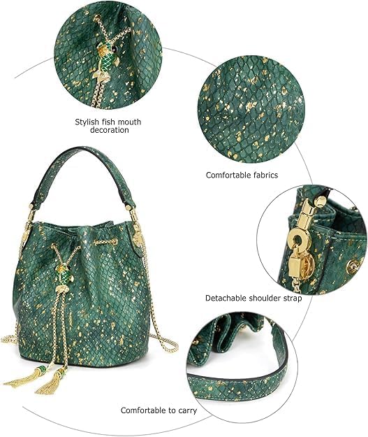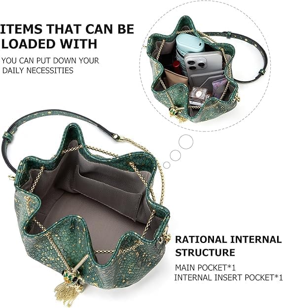 - Elegant Fashion Design:The snake print leather crossbody bag with chain strap combines classic, it is sexy, beautiful and high-end. Protect your bag with a tassel hook & goldfish lock drawstring and tensioning the chain securely, which is fashionable and simple and luxurious and high-end elements.