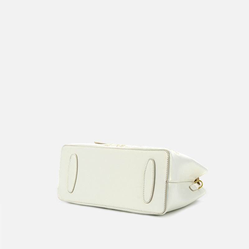 Embroidery Leather Tote Bag White Blooming Peony