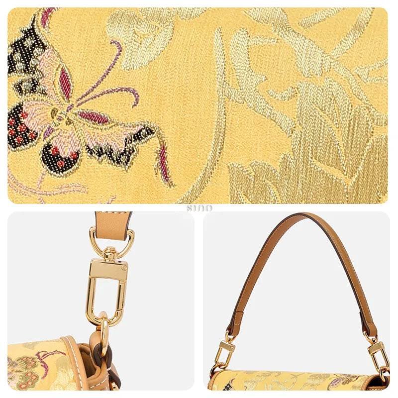 Luxury Yunjin Brocade Leather Handbag with Embroidered Butterfly Pattern