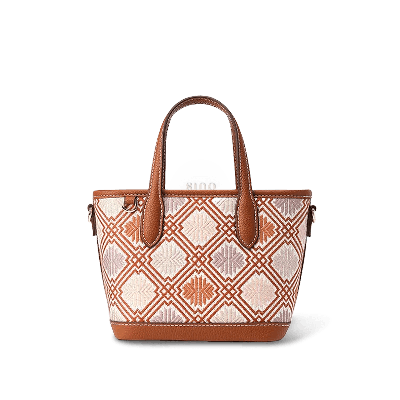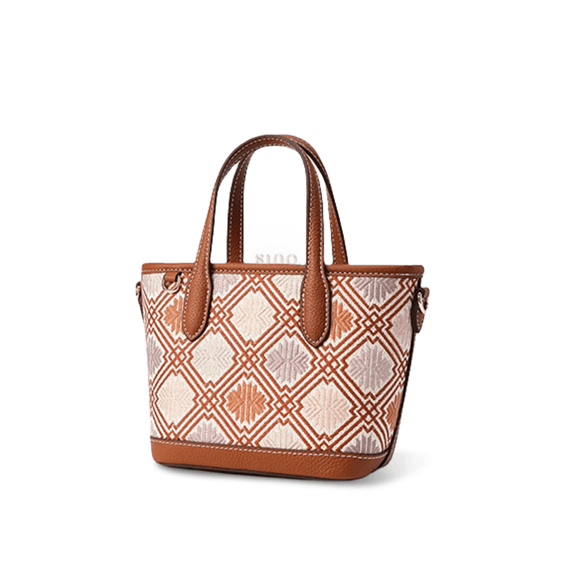 This crossbody bag takes Zhuang brocade as its soul, featuring classic diamond and fret patterns woven through the intangible cultural heritage “yarn tie-dye” technique. The motifs are displayed on a deep indigo or vermilion base, resembling mountain ranges and river networks, brimming with ethnic vitality. The main body of the bag is sculpted from vegetable-tanned leather for structure, edged with self-colored piping to create a tactile contrast between resilience and splendor against the brocade fabric.