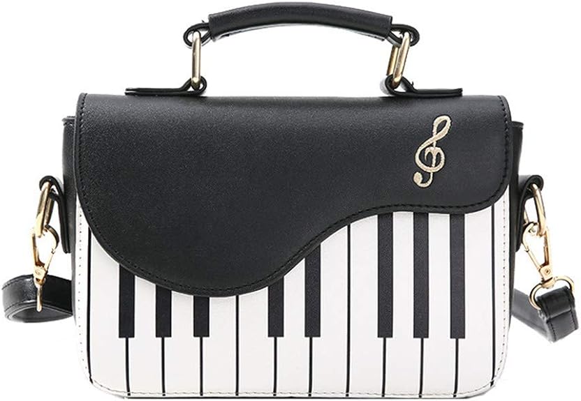 Piano Guitar Music Notes PU Leather Shoulder Tote Bag Purse Crossbody Handbag for Women Girls