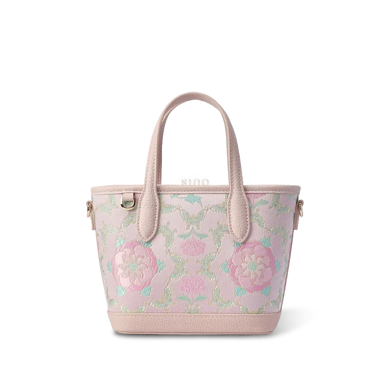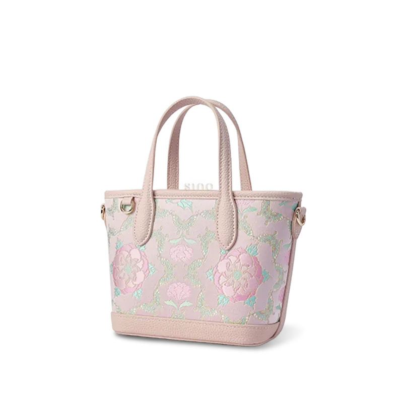 Romantic Shape:** The bag’s design is rounded and soft, its lines unfolding like flower petals. Its perfectly proportioned size balances elegance and practicality. The detachable leather and brocade shoulder strap offers multiple elegant carrying options, including crossbody and hand-carrying.