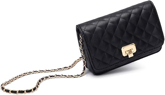 Women Black Quilted Purse Lattice Clutch Small Crossbody Shoulder Bag with Chain Strap Leather